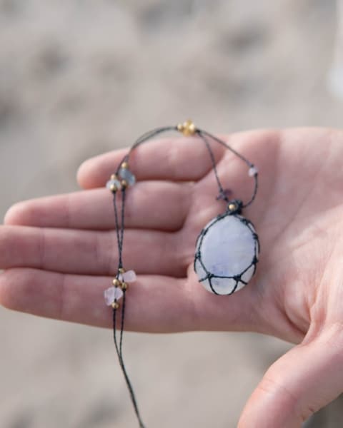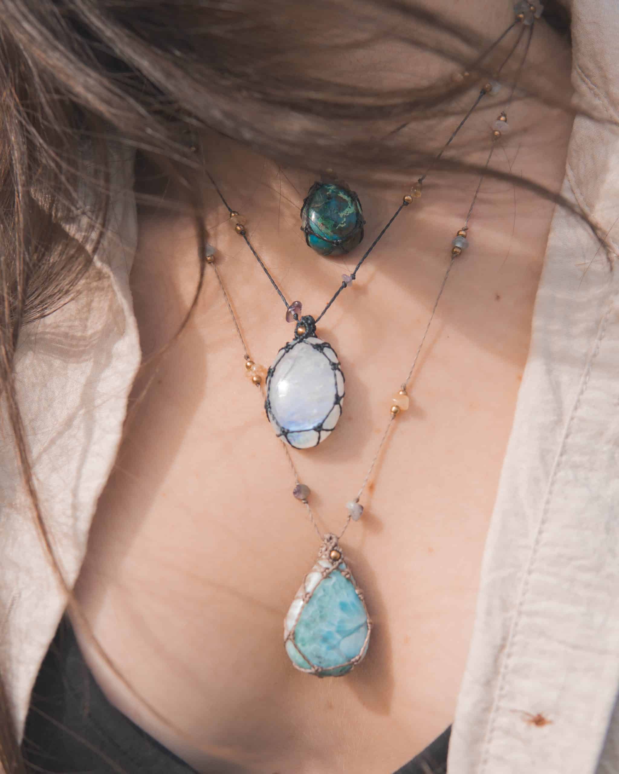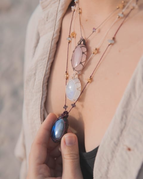Todas las joyas de Aisha Creations estas compuestas por materiales de calidad como el hilo encerado especial para joyas de macramé y piedras naturales de la mejor calidad.