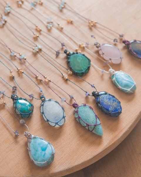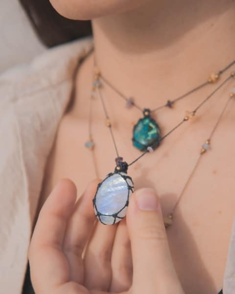 Todas las joyas de Aisha Creations estas compuestas por materiales de calidad como el hilo encerado especial para joyas de macramé y piedras naturales de la mejor calidad.